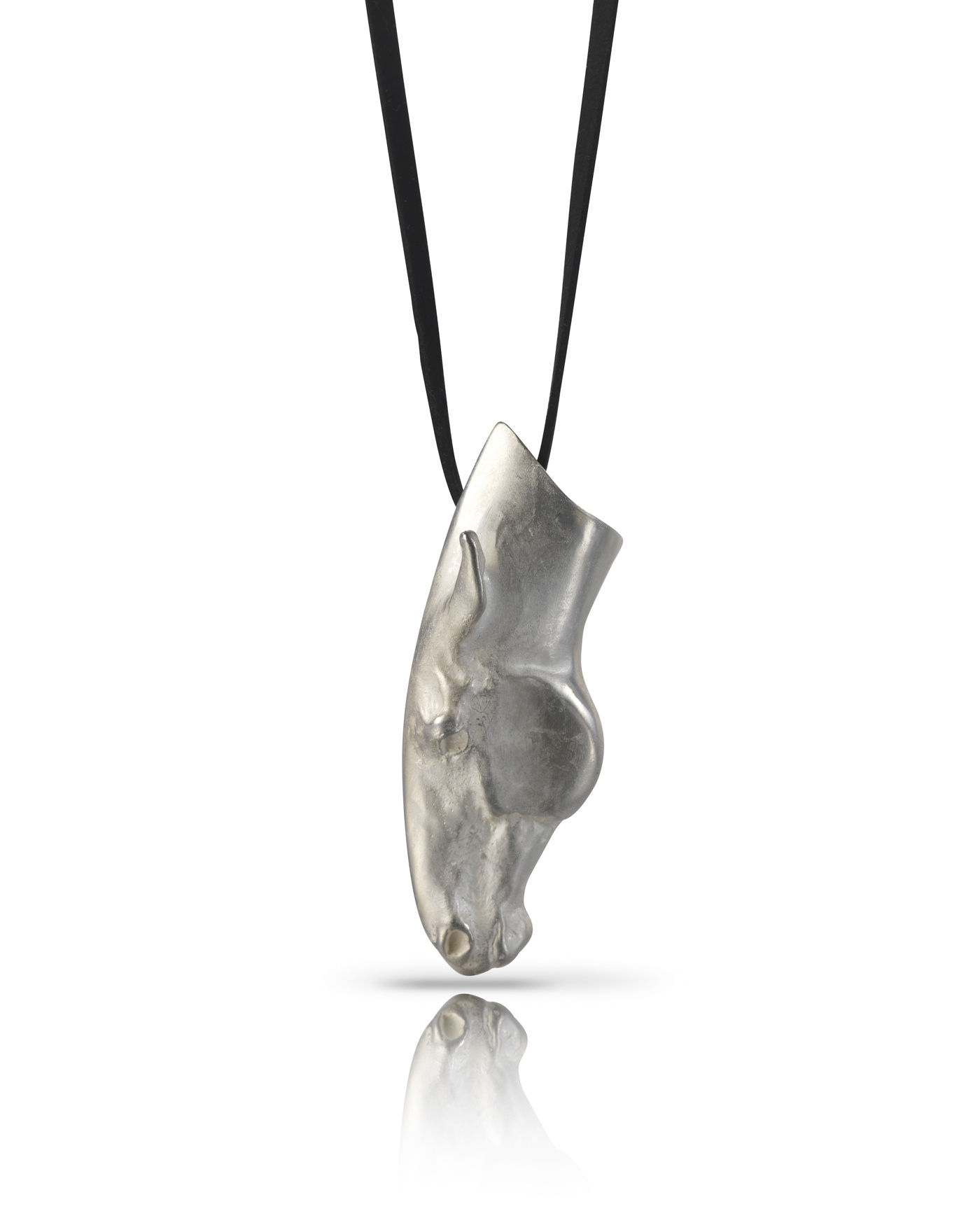 The Selene Horse has remained the key subject of his practice; a benchmark for balance, harmony and proportion since 1983. It was important for Fiddian Green that whilst not being worn it is a piece of art independent of function, at home on a coffee table or in a dressing room. The Horse Head pendant was one Fiddian Green’s earliest forays into the world of artist jewellery and has used it as his inspiration to create this unique silver sculpture/ pendant.
