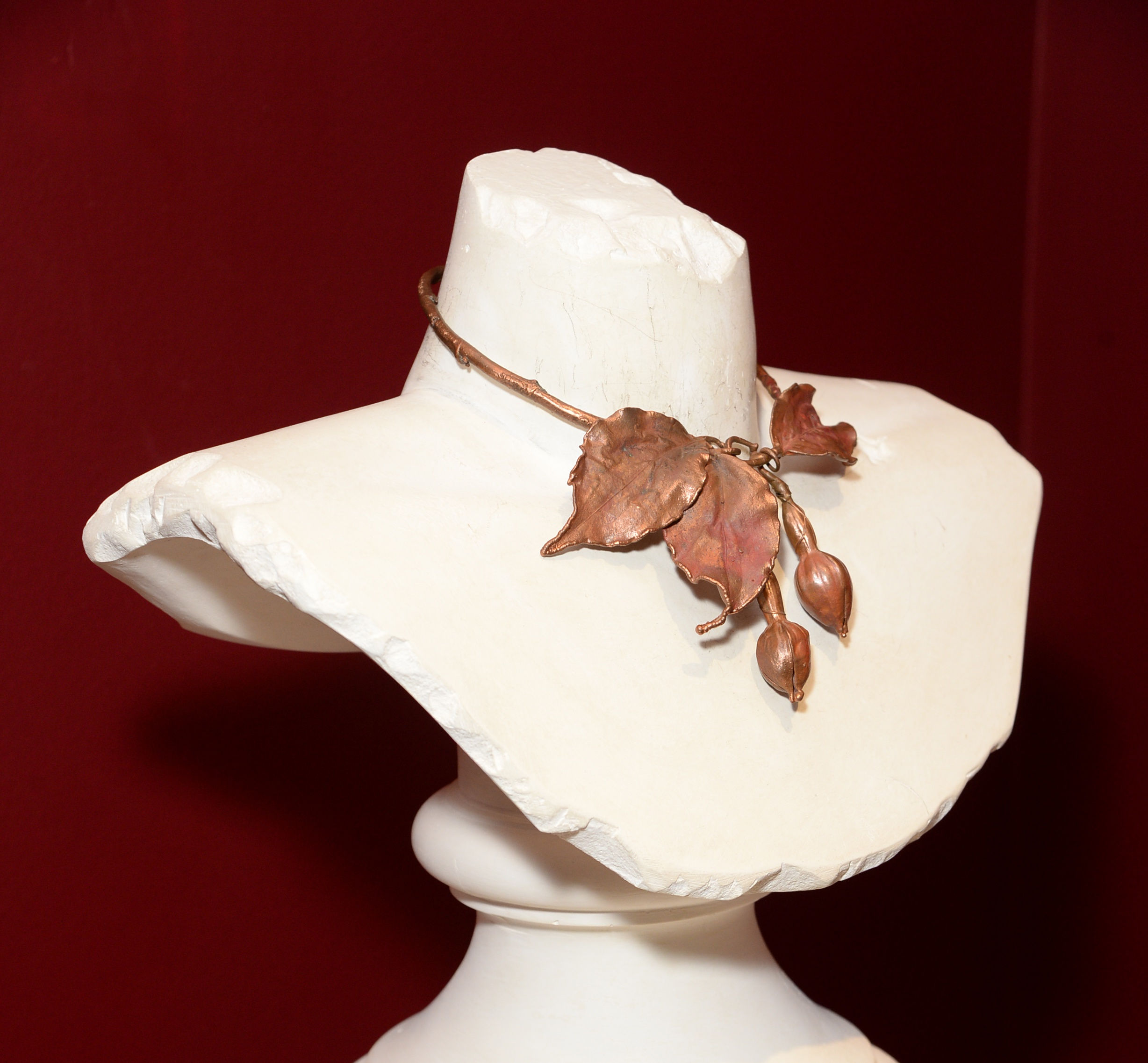 Claude Lalanne, Fuschia Necklace, 2011, galvanised copper, signed 'Lalanne', choker: 13.1 x 12.7 cm; pod and leaf: 89.2 x 16.6 x 2.0 cm; 94 grams. Unique