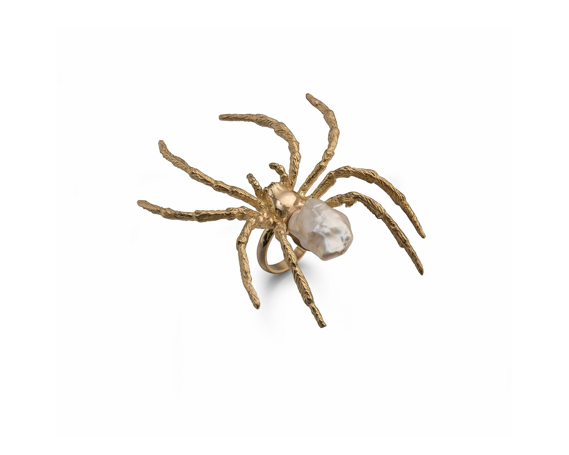 Webster’s most recent jewellery works, featured on this exhibition, were conceived as spider shaped jewels that chase each other around the body, her series balances Webster’s core punk sensibility with the domesticity of her surroundings - at home on a neck or scurrying on a shelf. The spider motif is furthered with a spider ring by an American artist Rob Wynne (b. 1950) that resulted through the collaboration with Louisa Guinness. Wynne pushes the boundaries of kitsch and beauty, sappiness and profundity.