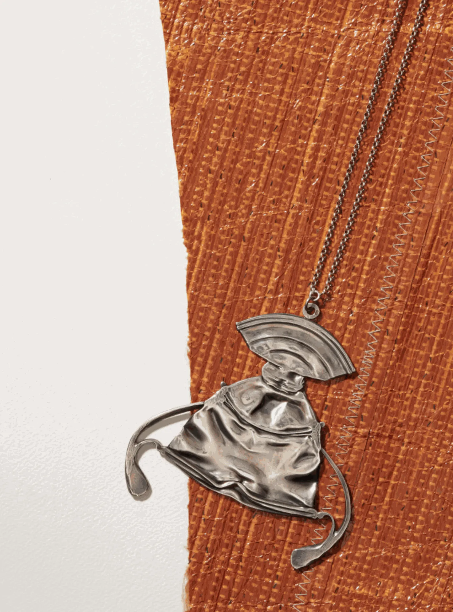 Cornelia Parker, Fallen Trophy Fallen Trophy, Medium Pendant, 2011. Silver with suspensory loop on top and chain. Pendant: 10.5 x 12.0 x 0.2cm, chain: 68 cm, 80 g. Unique piece in collaboration with Louisa Guinness.