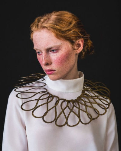 The gallery describes Calder’s jewelry as being “deeply unconventional in their time.” (It’s interesting this show follows on the heels of the ICA’s recently-closed“Judy Blame: Never Again”exhibit, as both men, though from different worlds, used a DIY approach to creating iconoclastic jewelry.) At a time when diamonds and mink coats were typical displays of wealth, these daring, calligraphic pieces had little in common with contemporary bijoux. In fact, for all of their modernity, they bear more of a resemblance to ancient artifacts. If Calder’s jewelry didn’t communicate prosperity, it did convey status, at least to insiders of the bohemian-leaning art world, such as painter Georgia O’Keeffe and patroness Peggy Guggenheim, strong characters with well-defined tastes. “The Boldness of Calder” combines objects with archival photography and new images commissioned from fashion photographer Alexander English. These are intended to show the timelessness of Calder’s inimitable jewelry, which Vogue once described as “truly, sculpture to wear.”